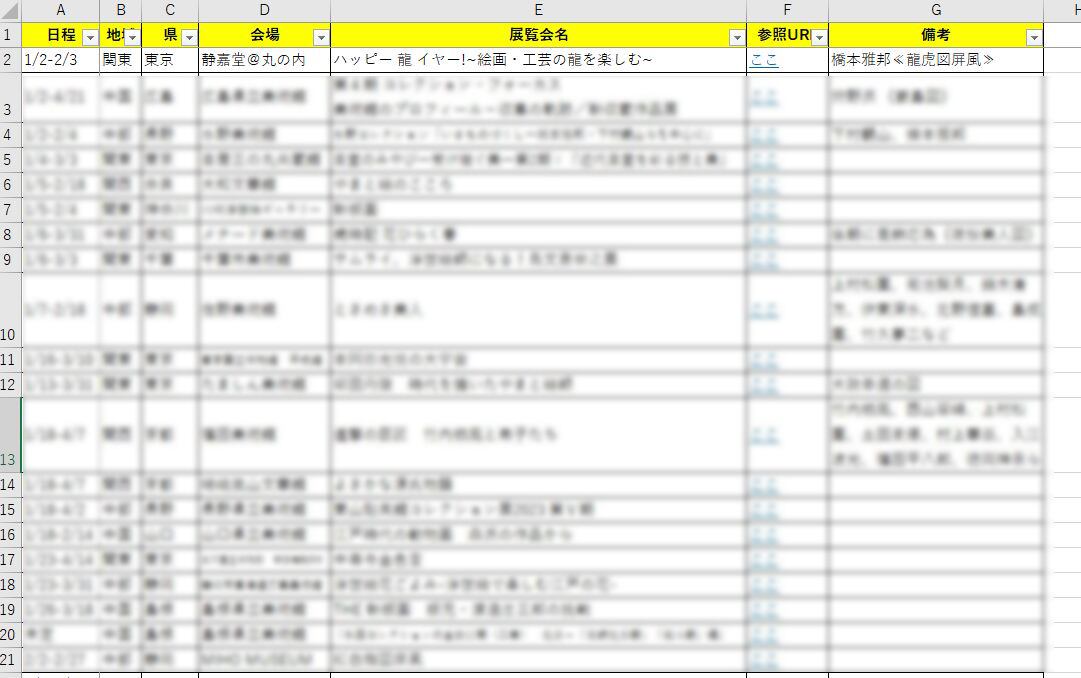 2024年の全国日本美術展情報を網羅したリストのエクセルデータです。(このデータは2023年12月4日までの発表情報を基にしています。)